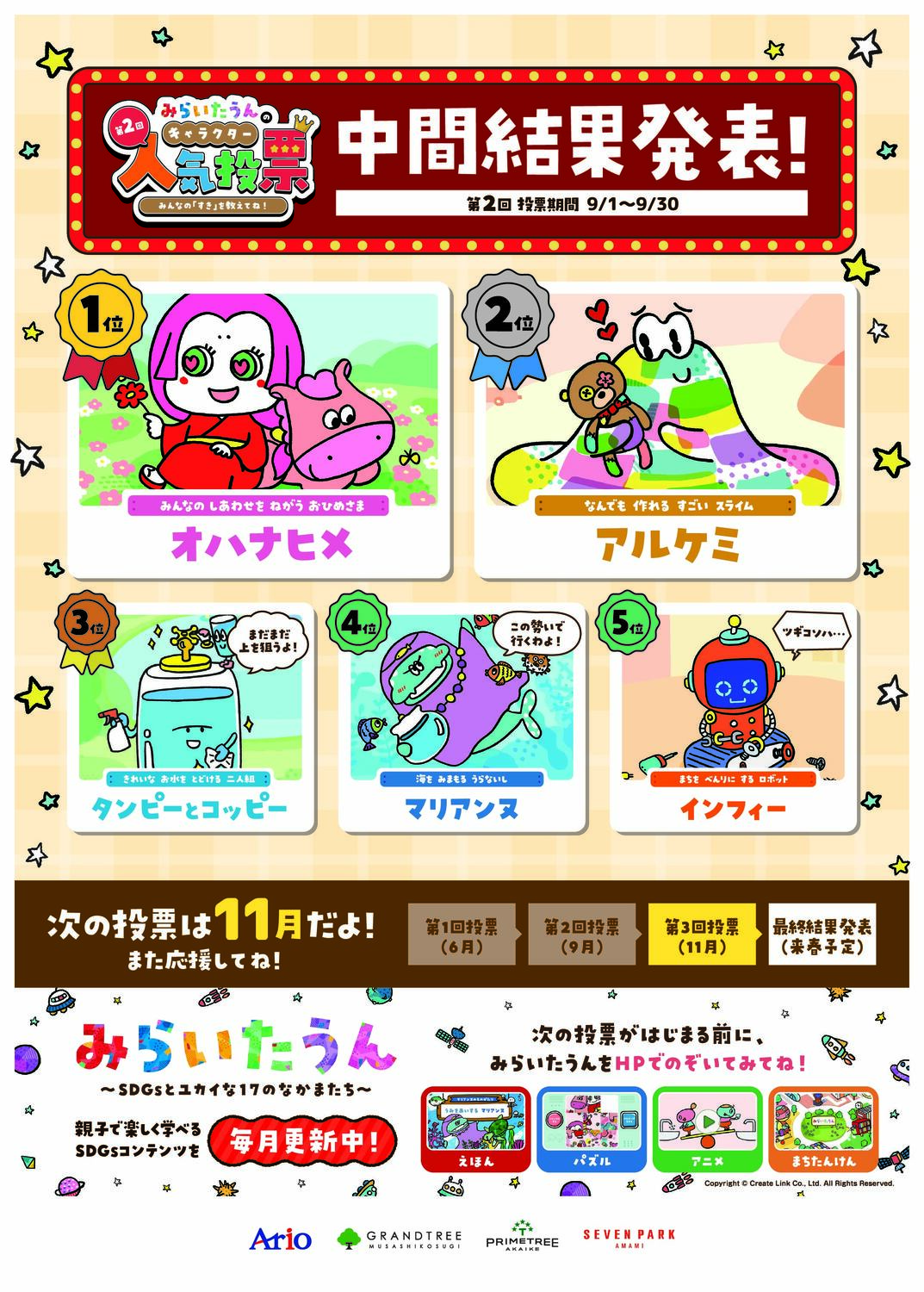 【中間結果発表!】第2回みらいたうんキャラクター 人気投票へのご参加ありがとうございました!