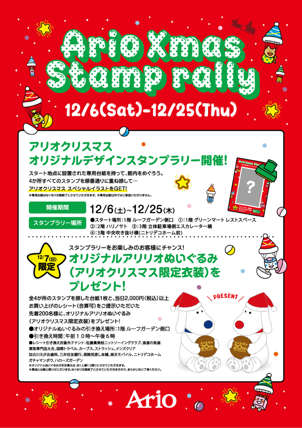 オリジナルアリリオぬいぐるみ(アリオクリスマス限定衣装)をプレゼント!