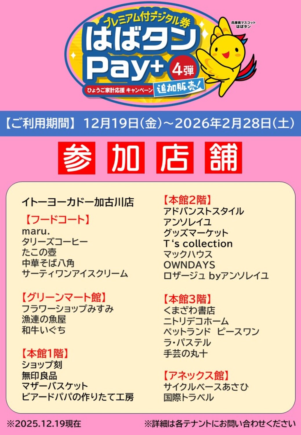 ~ひょうご家計応援キャンペーン~ はばタンPay+(プラス)第四弾 追加販売 が使えるお店