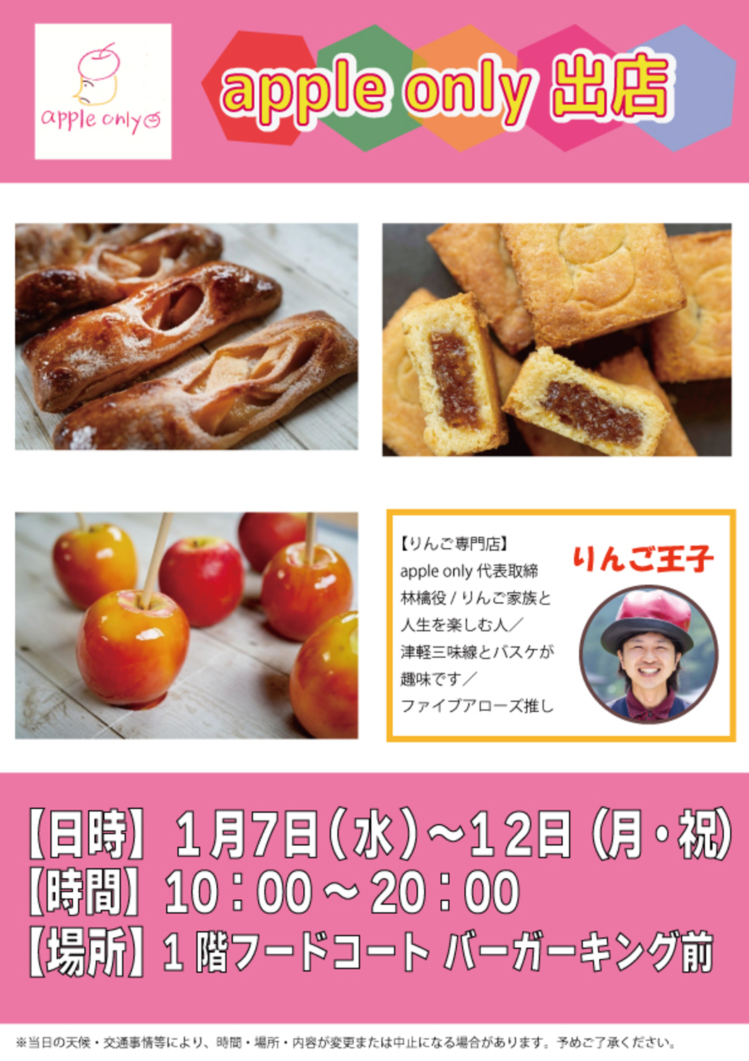 りんご飴、アップルパイ、りんごワッフルなどを販売