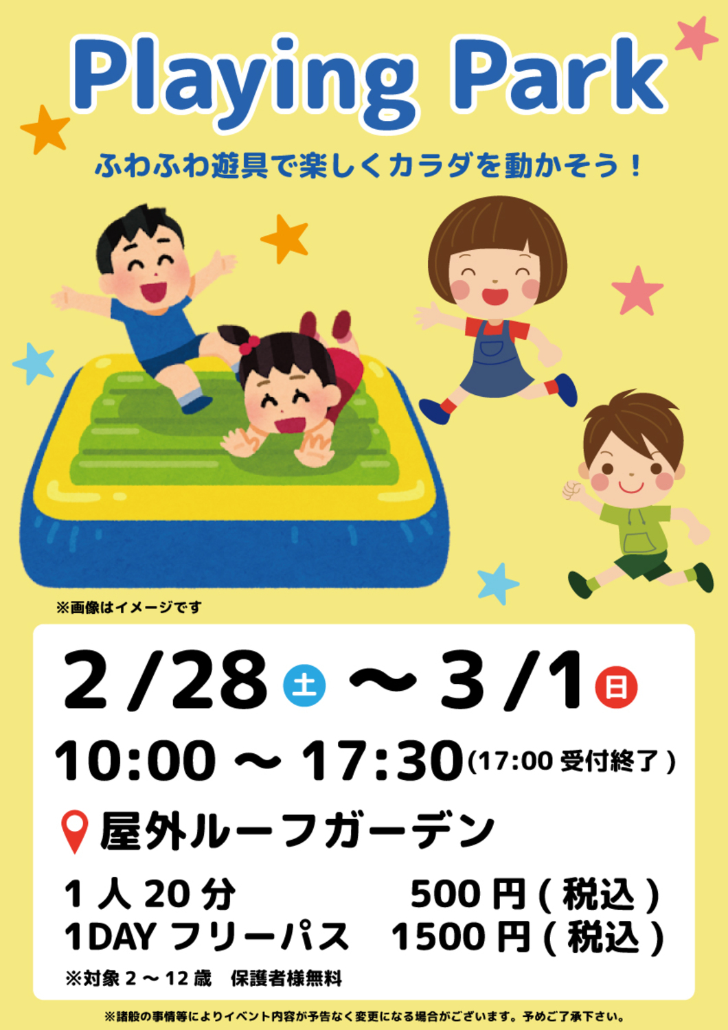 わくわく、ドキドキのふわふわ遊具がルーフガーデンに登場!!