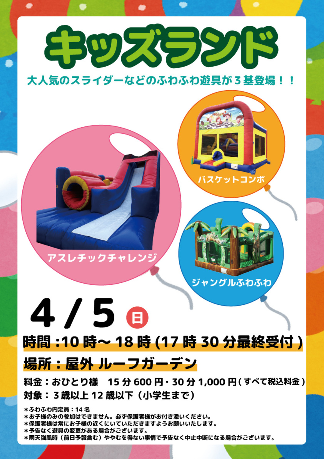 ※保護者様は常にお子様の近くにいていただきますようお願いします。