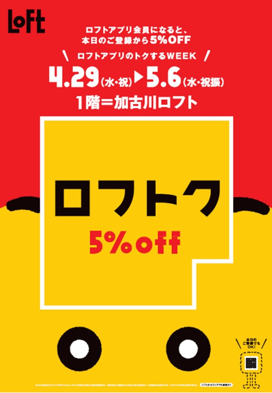 加古川ロフトではロフトアプリ会員限定5%OFFでお買物が楽しめるオトクなWEEKを開催!