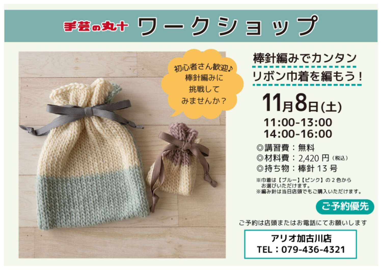 ※ 棒針は当日、店頭でもご購入いただけます