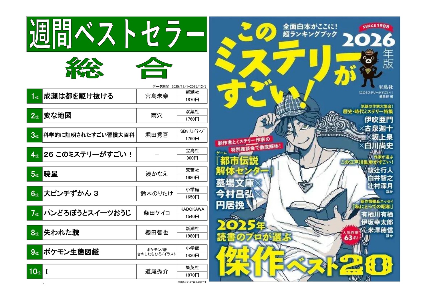 今週も1位は「 成瀬は都を駆け抜ける 」新潮社