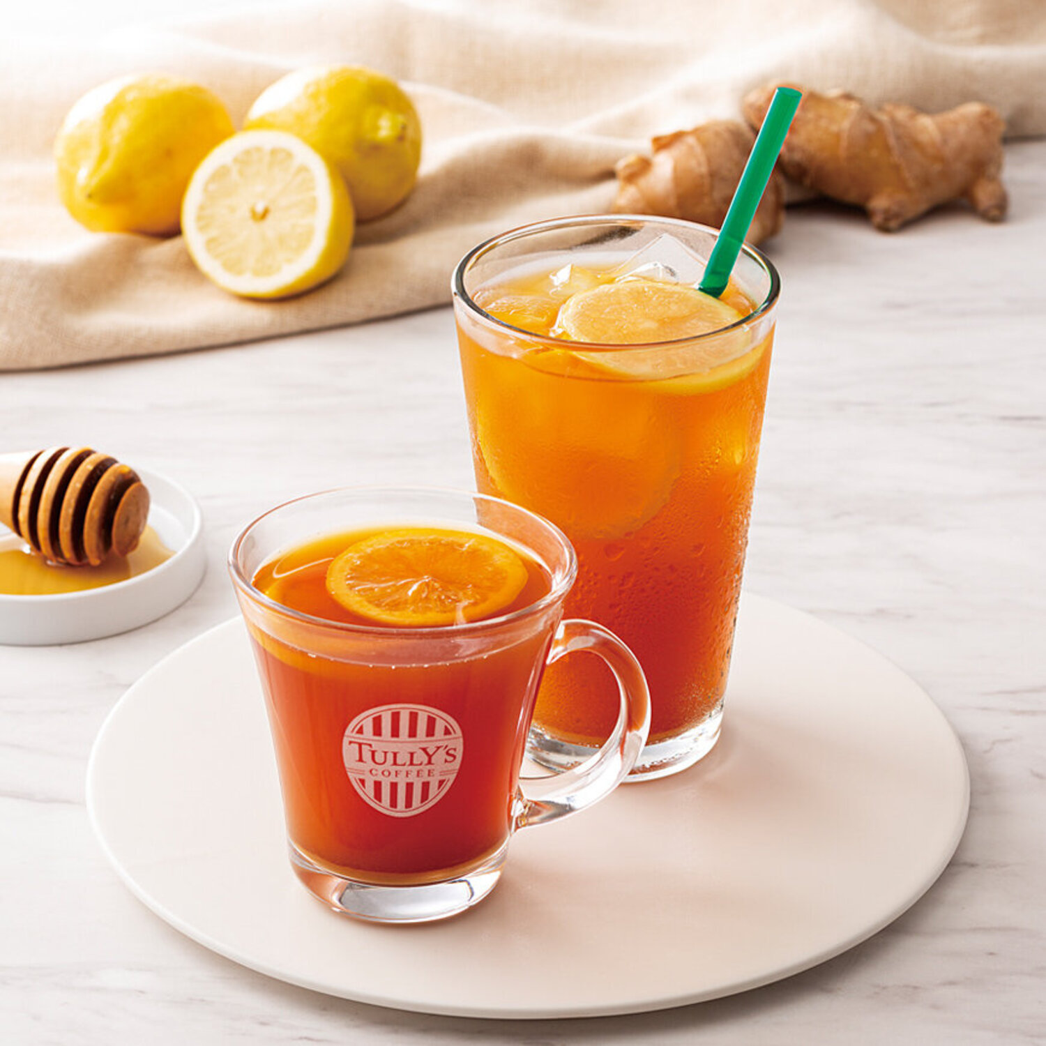レモンの爽やかな酸味とはちみつのまろやかな甘みを感じるレモネードティーです。ピリッとした生姜の辛味が心地よいアクセントになっています。
