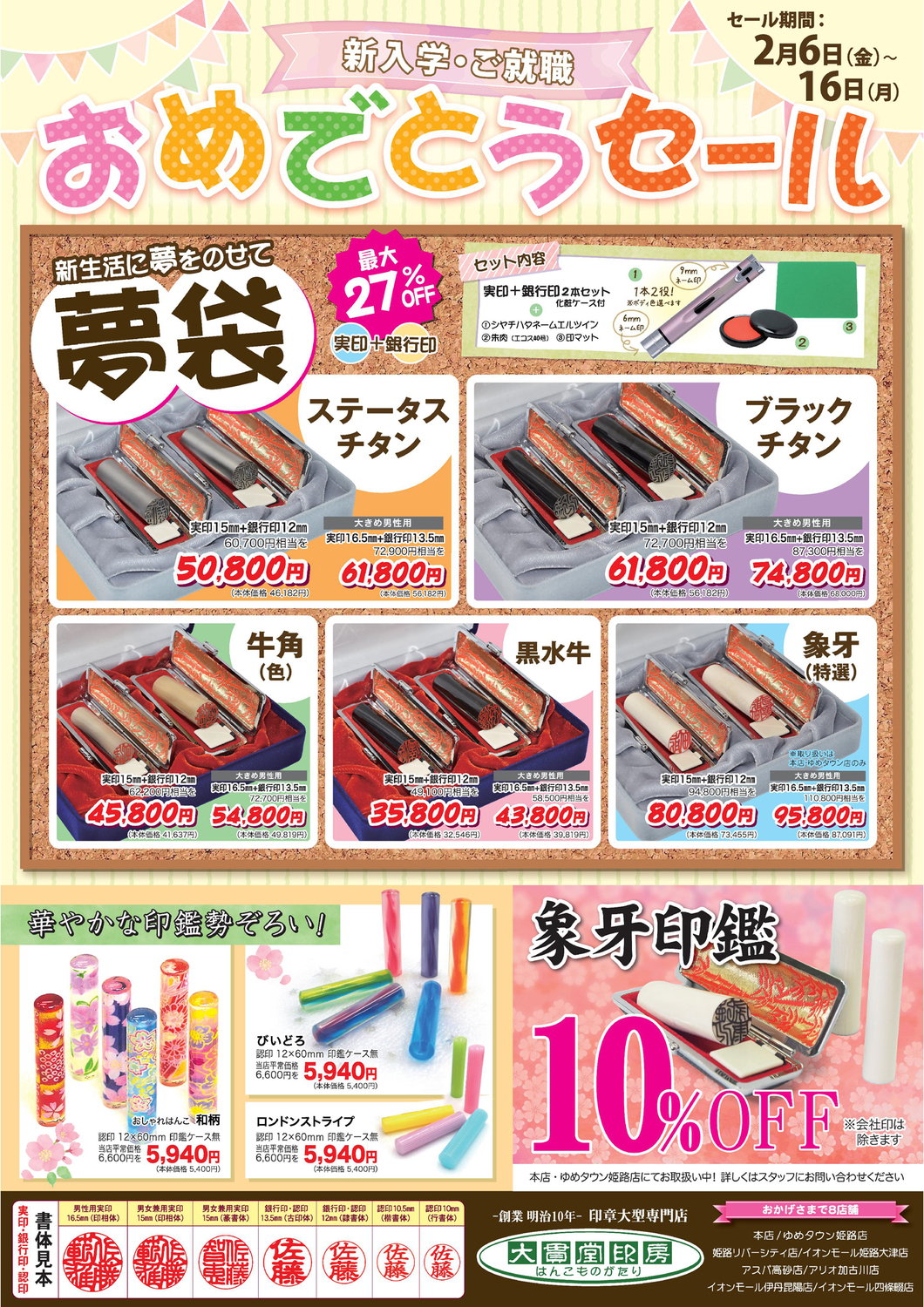 ブラックチタン、ステータスチタン、牛角(色)、黒水牛 それぞれ実印+銀行印2本セット(ケース付き)にシャチハタネームエルツイン、朱肉、印マットをお付けしてお買い得な価格になっております。是非ご検討の上ご来店くださいませ。心よりお待ちしております。