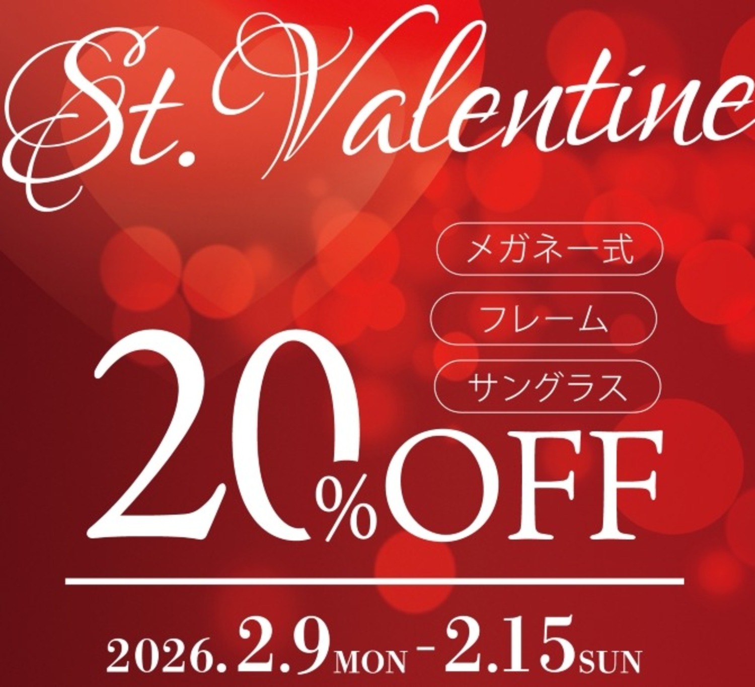 2月9日〜2月15日の1週間、メガネ一式・フレーム・サングラスをバレンタインシーズン限定のスペシャルプライスでご提供いたします!大切な人へのギフトや、自分へのご褒美にもおすすめのアイウエアが勢ぞろい。新しいメガネやサングラスで、お出かけや旅行、おうち時間をもっと素敵に彩りませんか。この季節だけの特別なお買い物を、ぜひ店頭でお楽しみください。