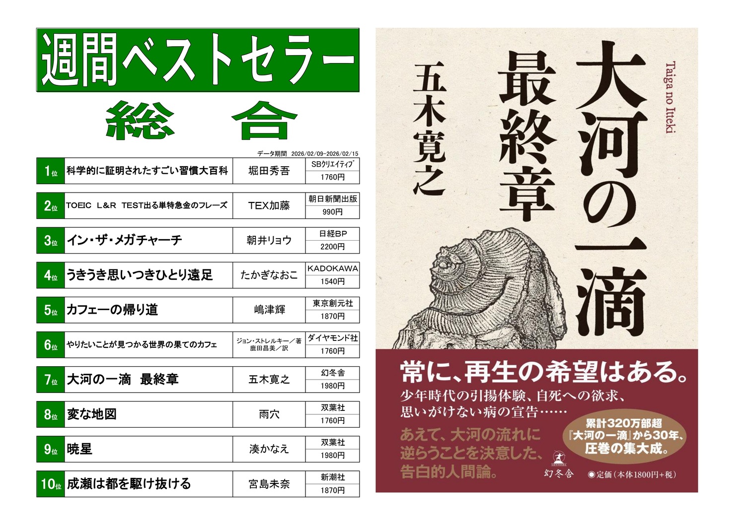 7位「大河の一滴 最終章」幻冬舎