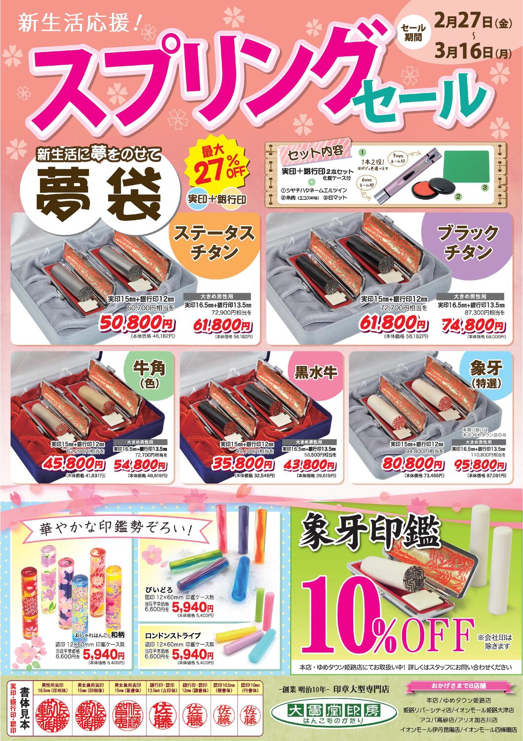 新生活の必需品、ネームペン・ネーム印(10%~20%OFF)
