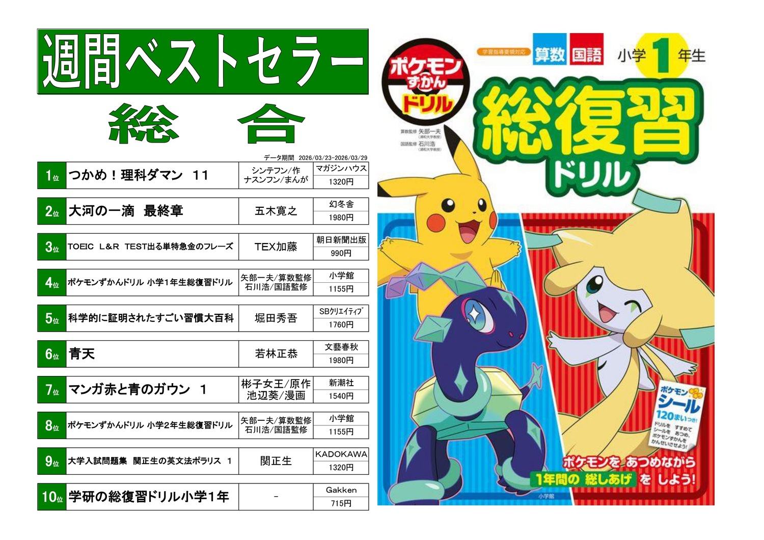 4位「ポケモンずかんドリル 小学1年生総復習ドリル」小学館