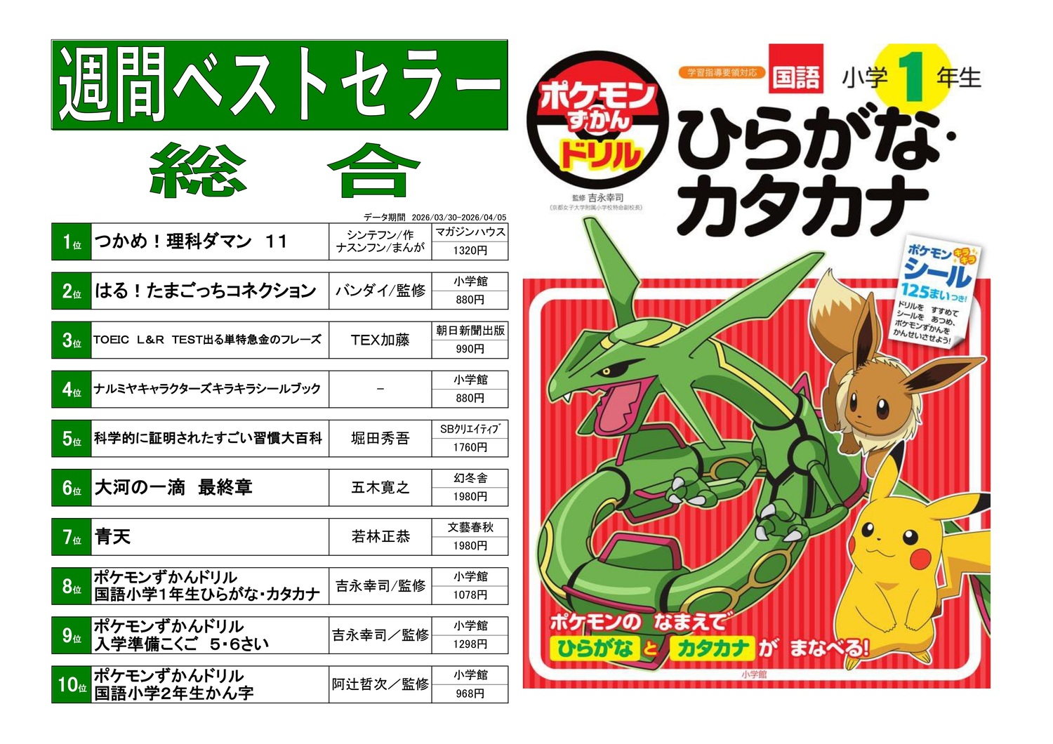 9位「ポケモンずかんドリル 国語小学1年生ひらがな・カタカナ」小学館